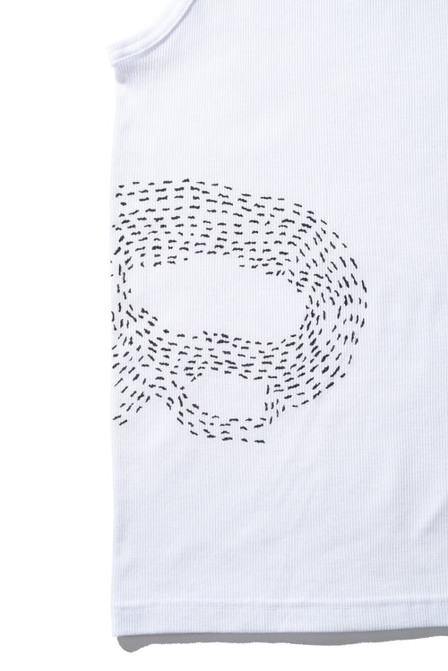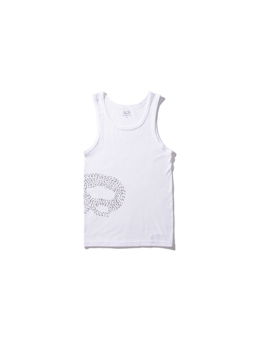 アメリカを代表するアンダーウェアメーカー" Fruit of the Loom® "とのコラボレーション。中でもリブ仕様のタンクトップはブランドを代表する定番のアイテム。SandWaterr”SASHIKO”のグラフィックを腹部にプリントしています。
