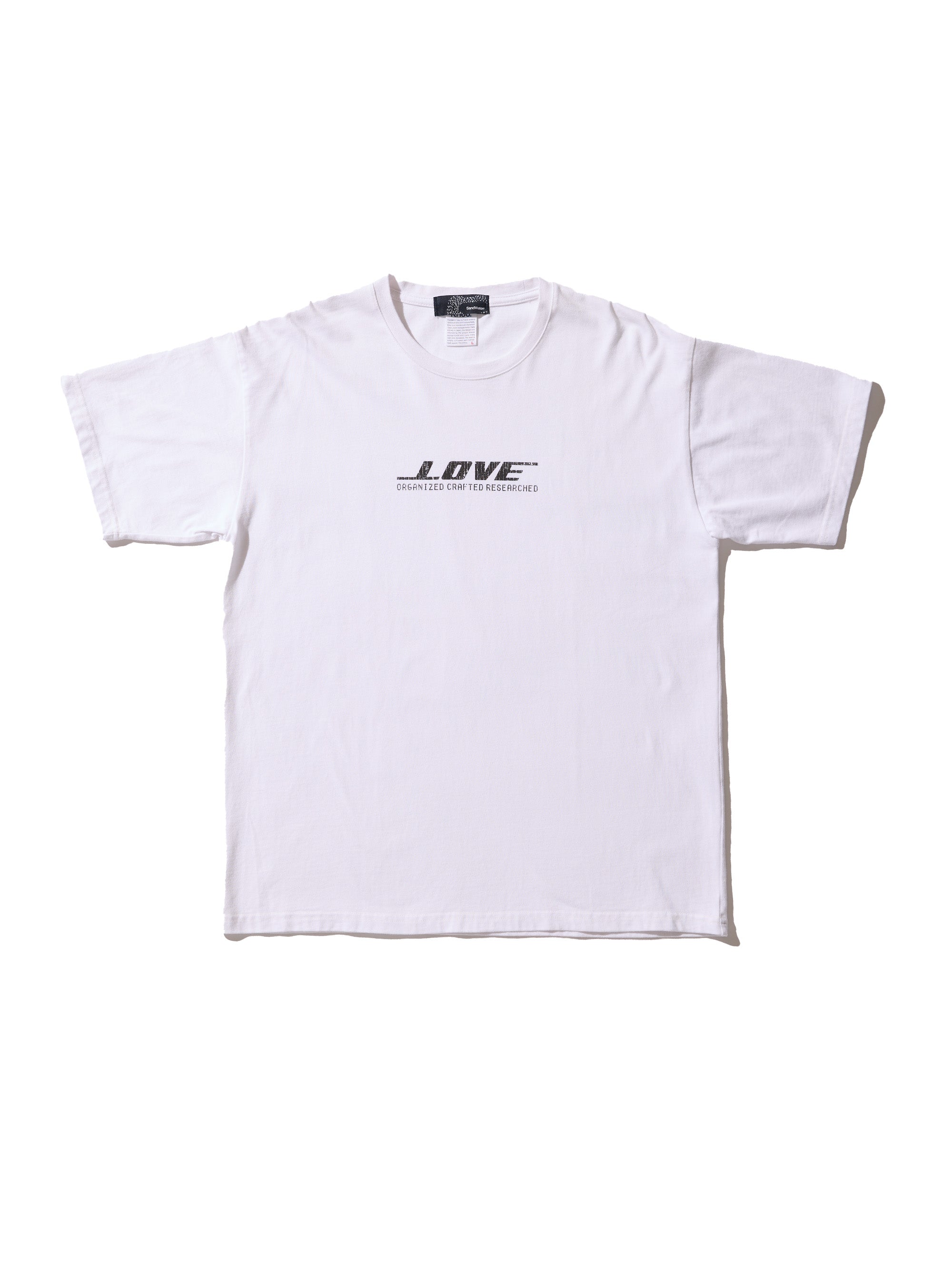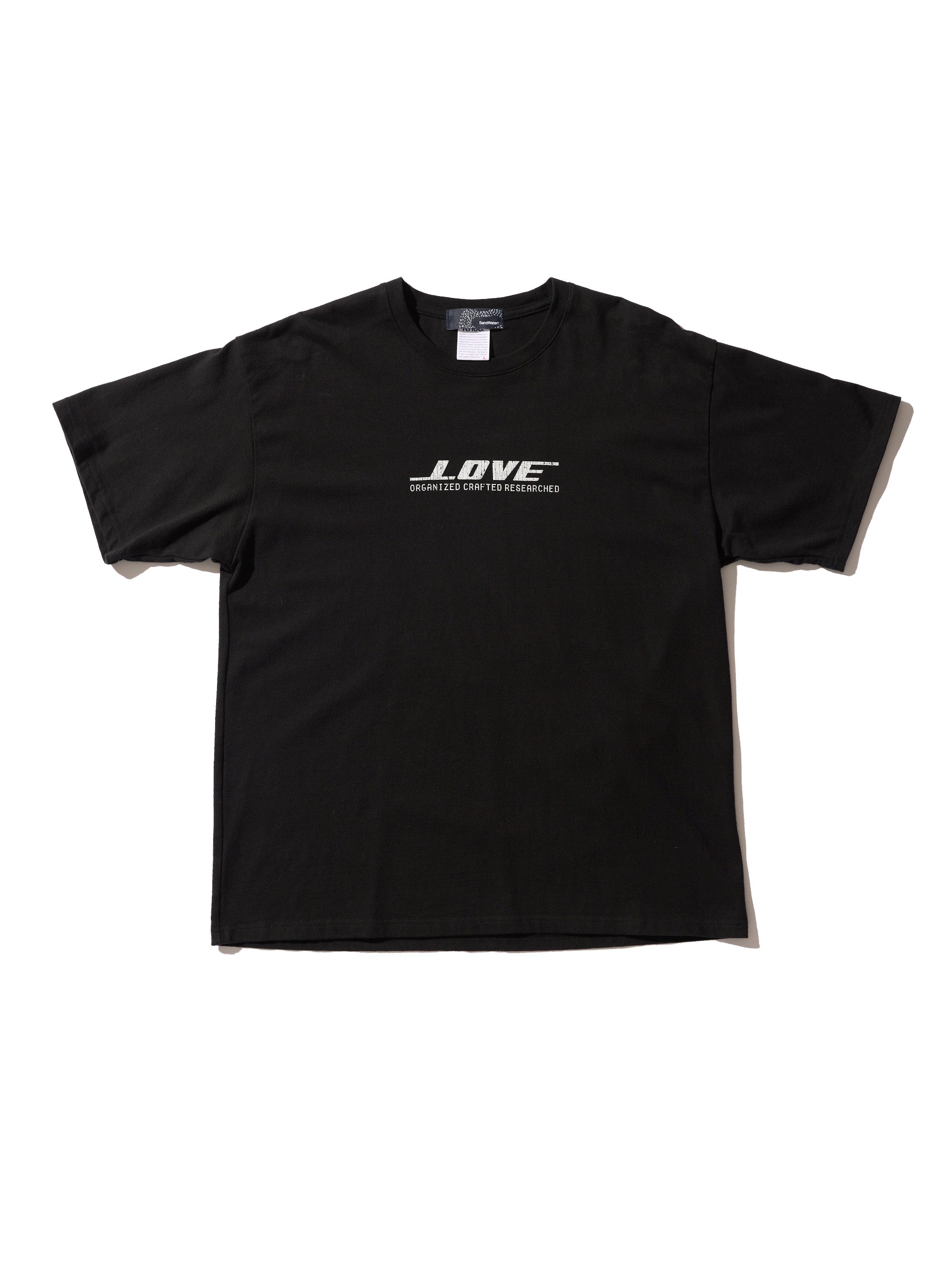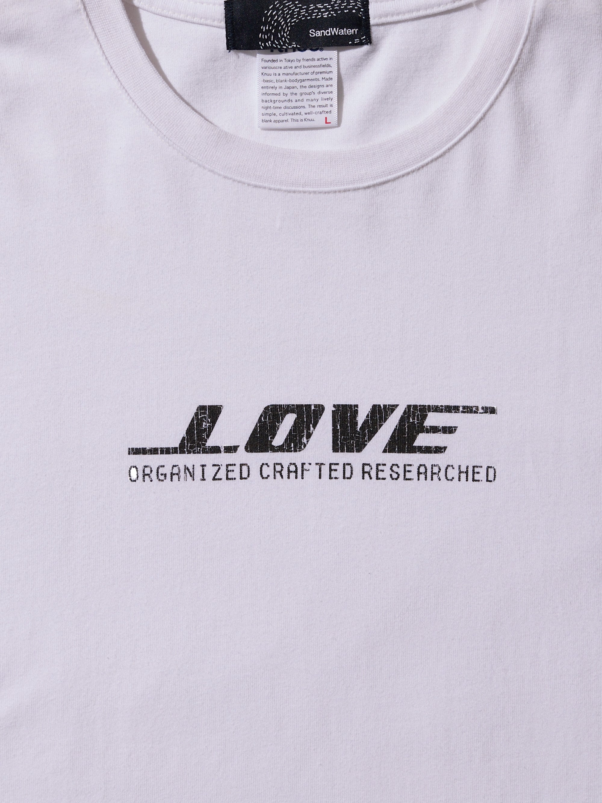 東京発のプレーンボディブランド" Knuu® "のボディを使用しています。製品にはウォッシュ加工を施しています。”LOVE”を企業ロゴ調にアレンジしたグラフィック。