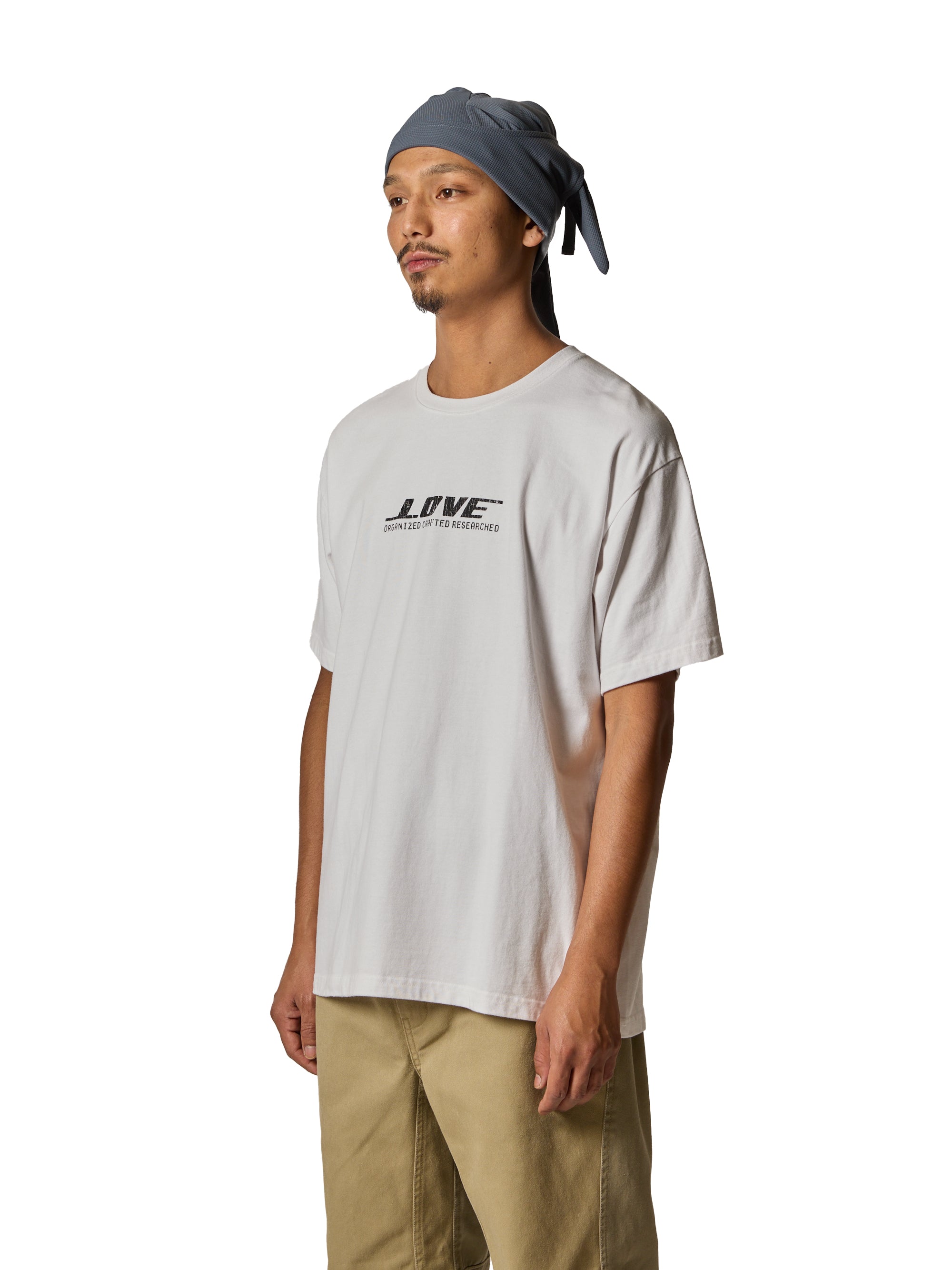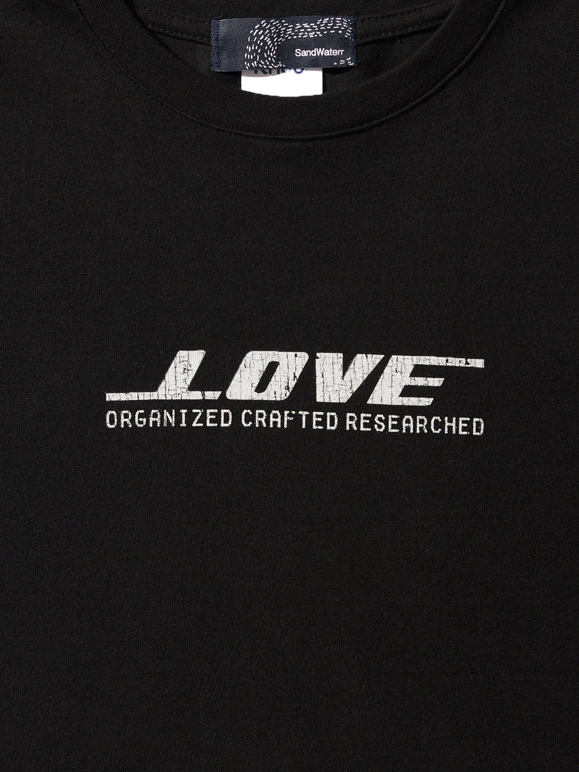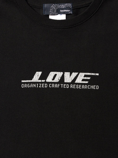 東京発のプレーンボディブランド" Knuu® "のボディを使用しています。製品にはウォッシュ加工を施しています。”LOVE”を企業ロゴ調にアレンジしたグラフィック。