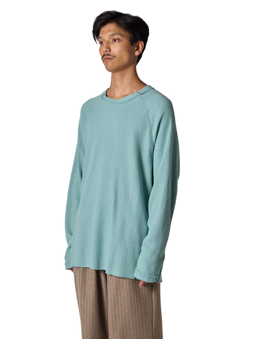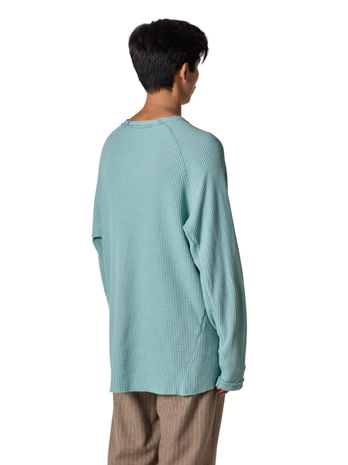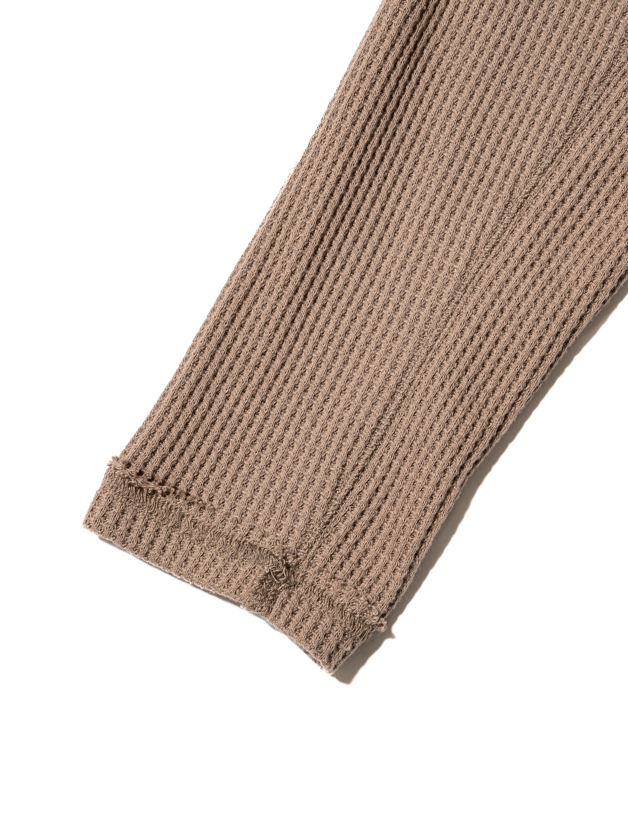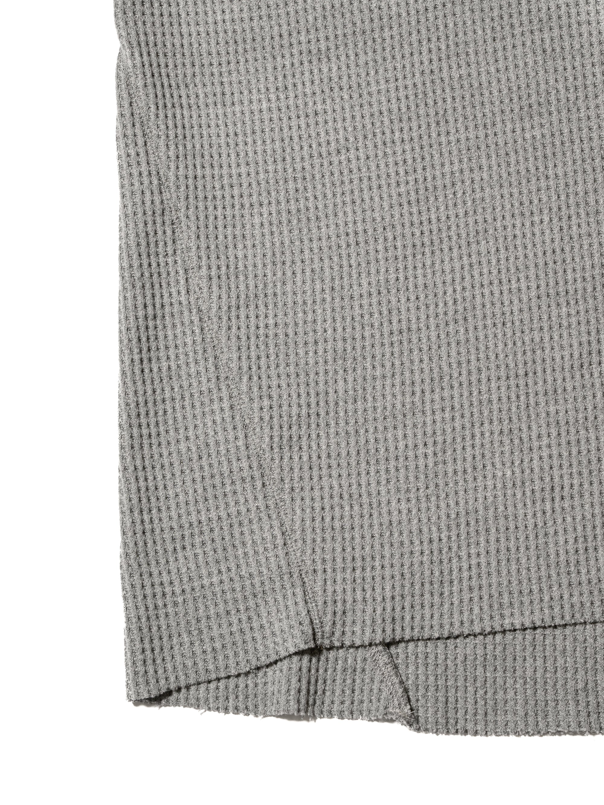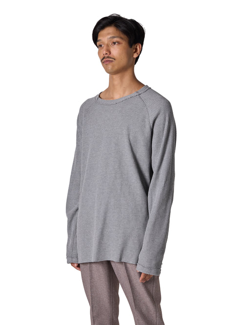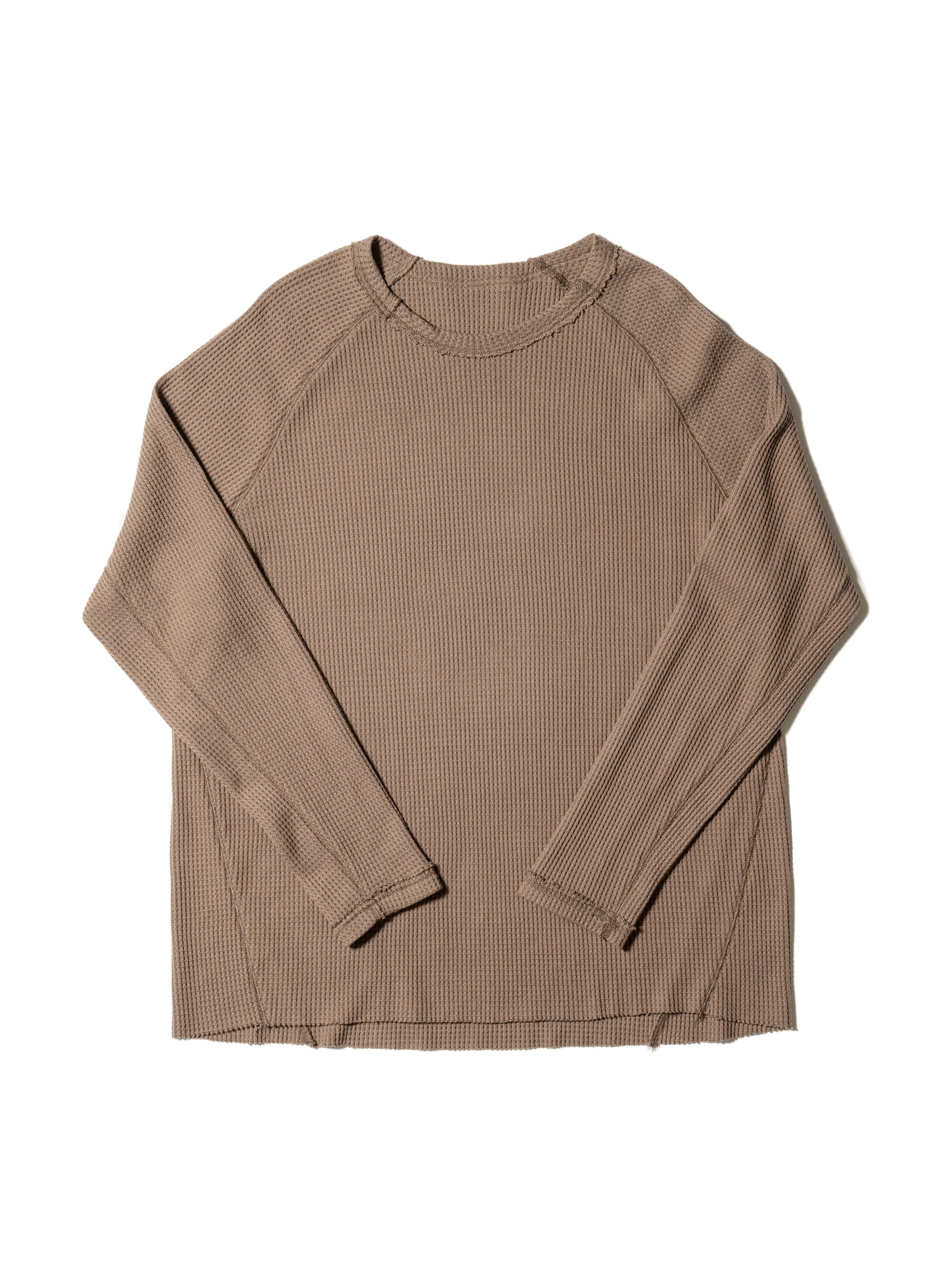 柔らかく、保温性の高いサーマル地を使用しています。身幅にゆとりのあるバギーシルエットになります。