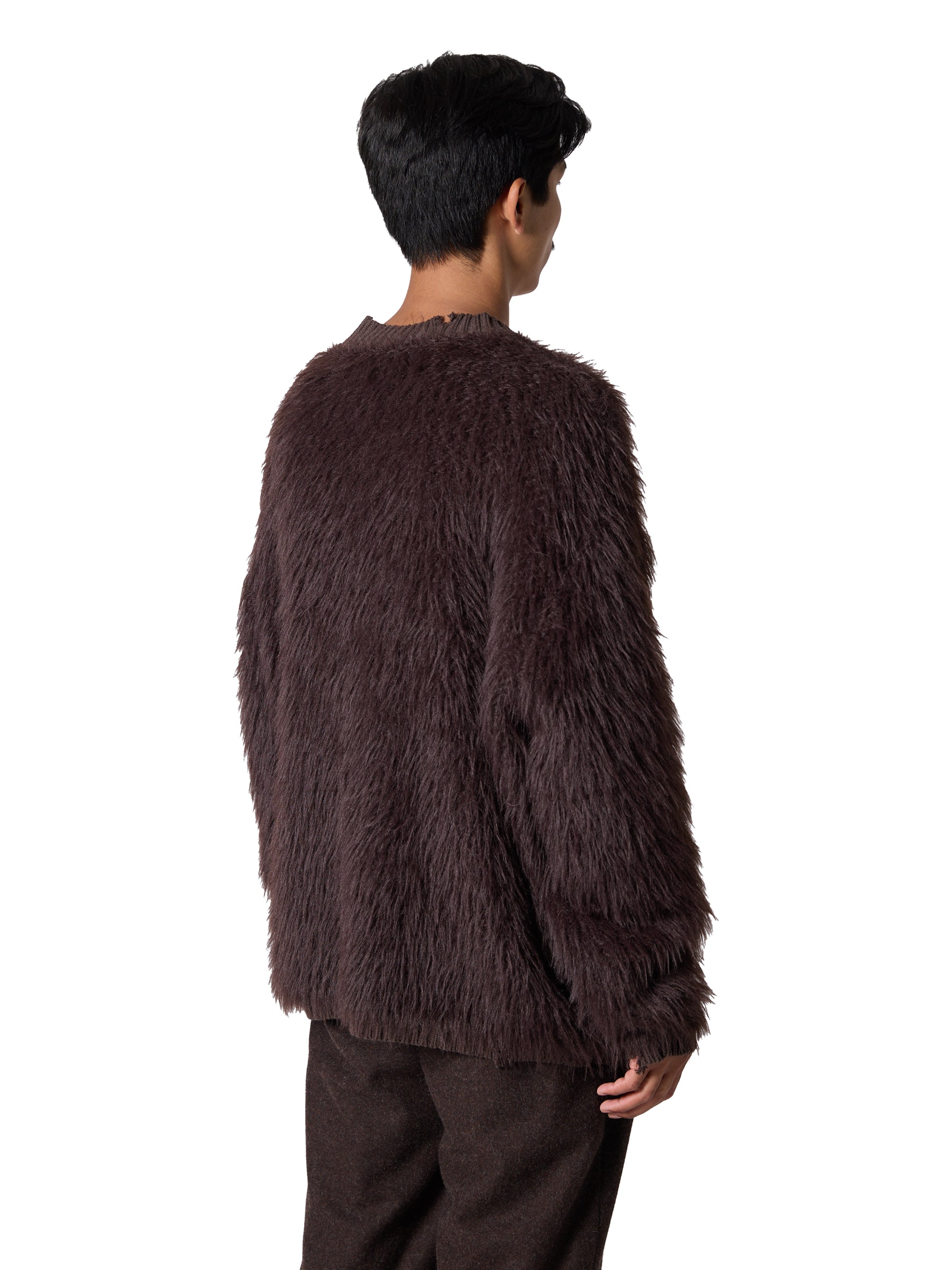 コットン、化繊がミックスされた毛足の長いフェザー糸を使用しています。