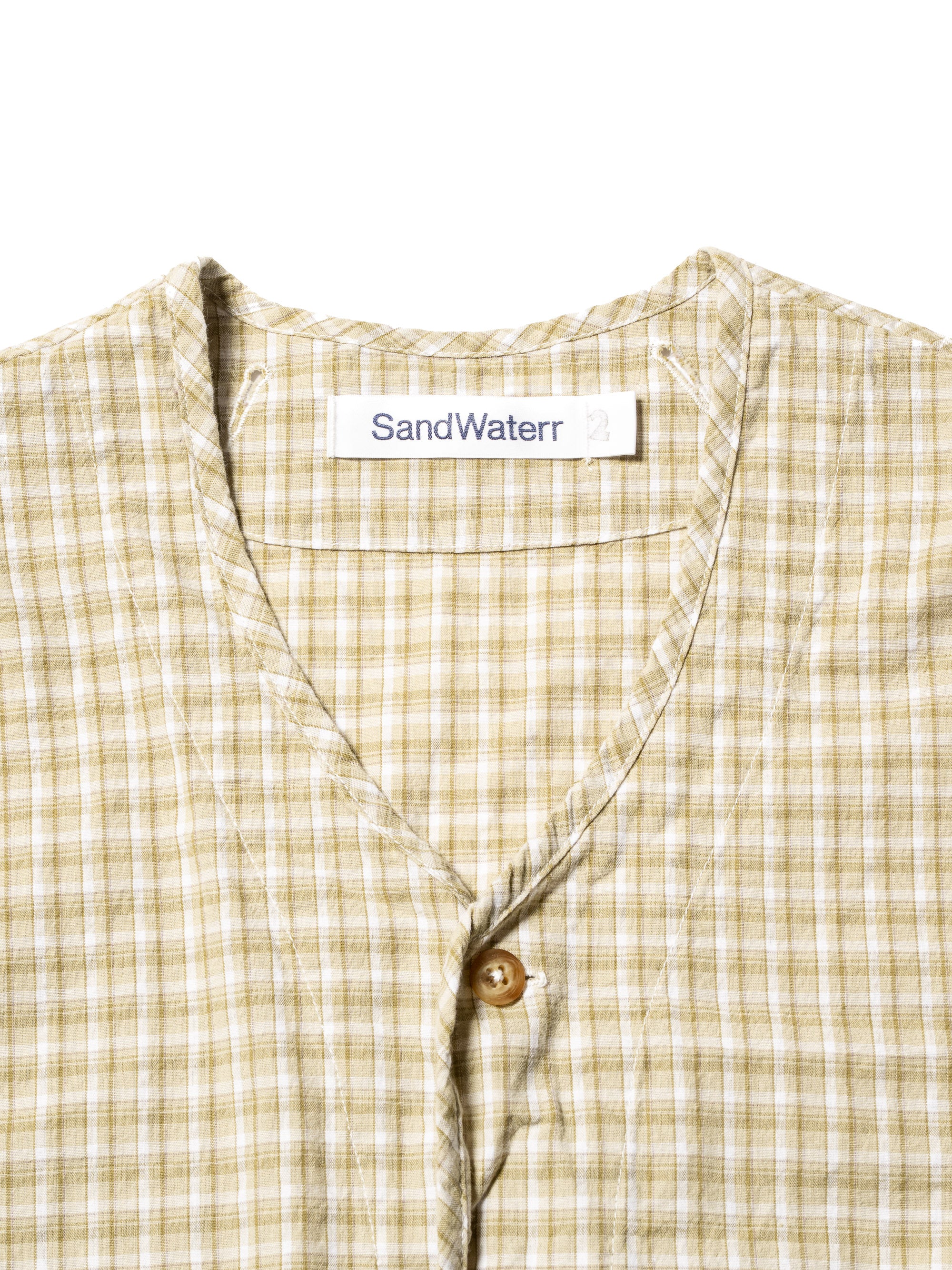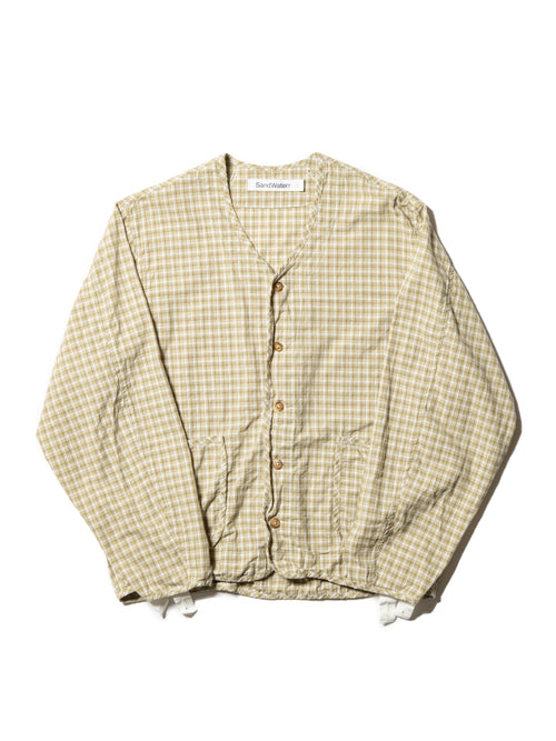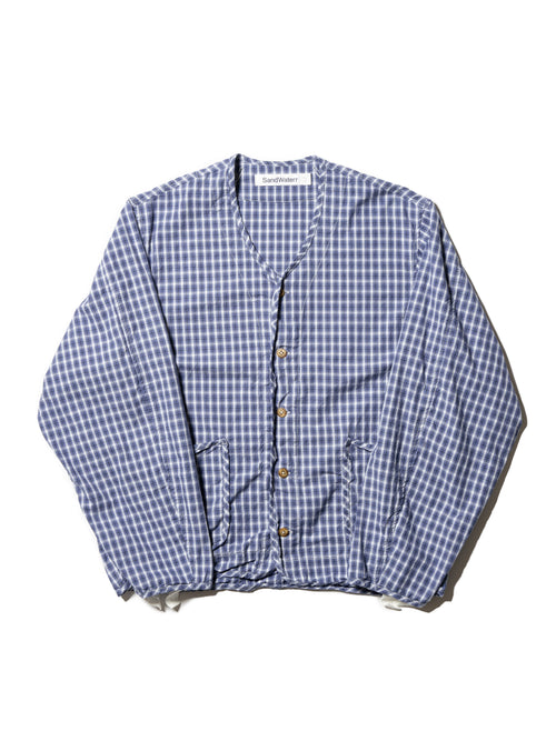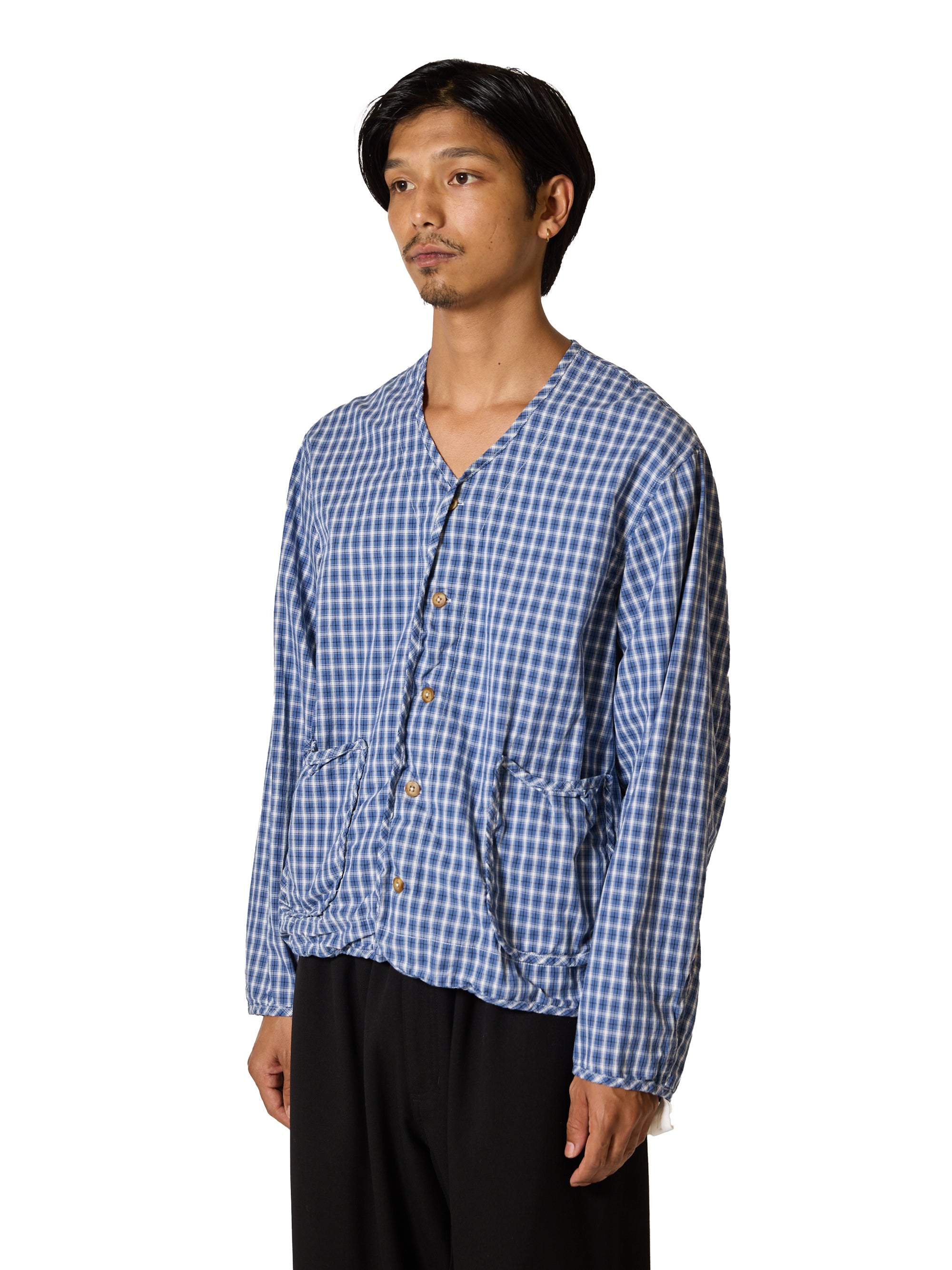 コットン100%のチェック柄ブロード地を使用しています。ウォッシュ加工を施し、古着の様な愛着ある風合いにしています。身幅にゆとりあるショート丈のボックスシルエット。襟ぐりにあるボタンホール、袖口のテープパーツを使い、"M51"モッズパーカーに装着できるディテールを備えています。